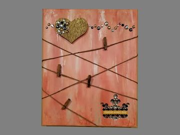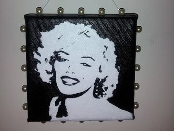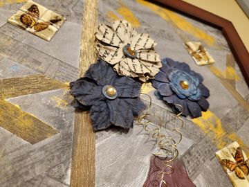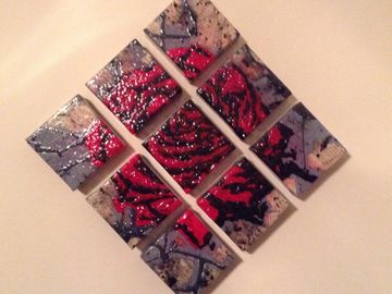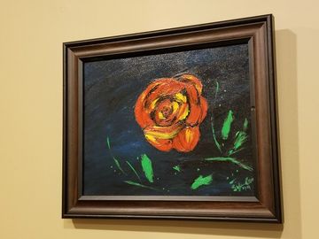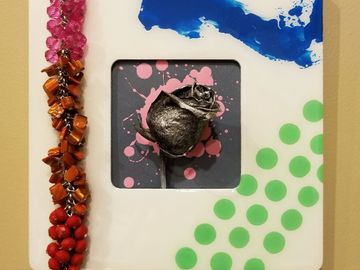 Mixed media; acrylic, beads, dried rose. frame: 8x8, picture: 3.5x3.5. Note: rose can be replaced with any photo or other creation.