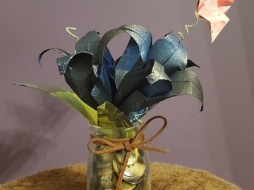 Mixed media; Styrofoam, cardboard, acrylic, epoxy, bead and feather.